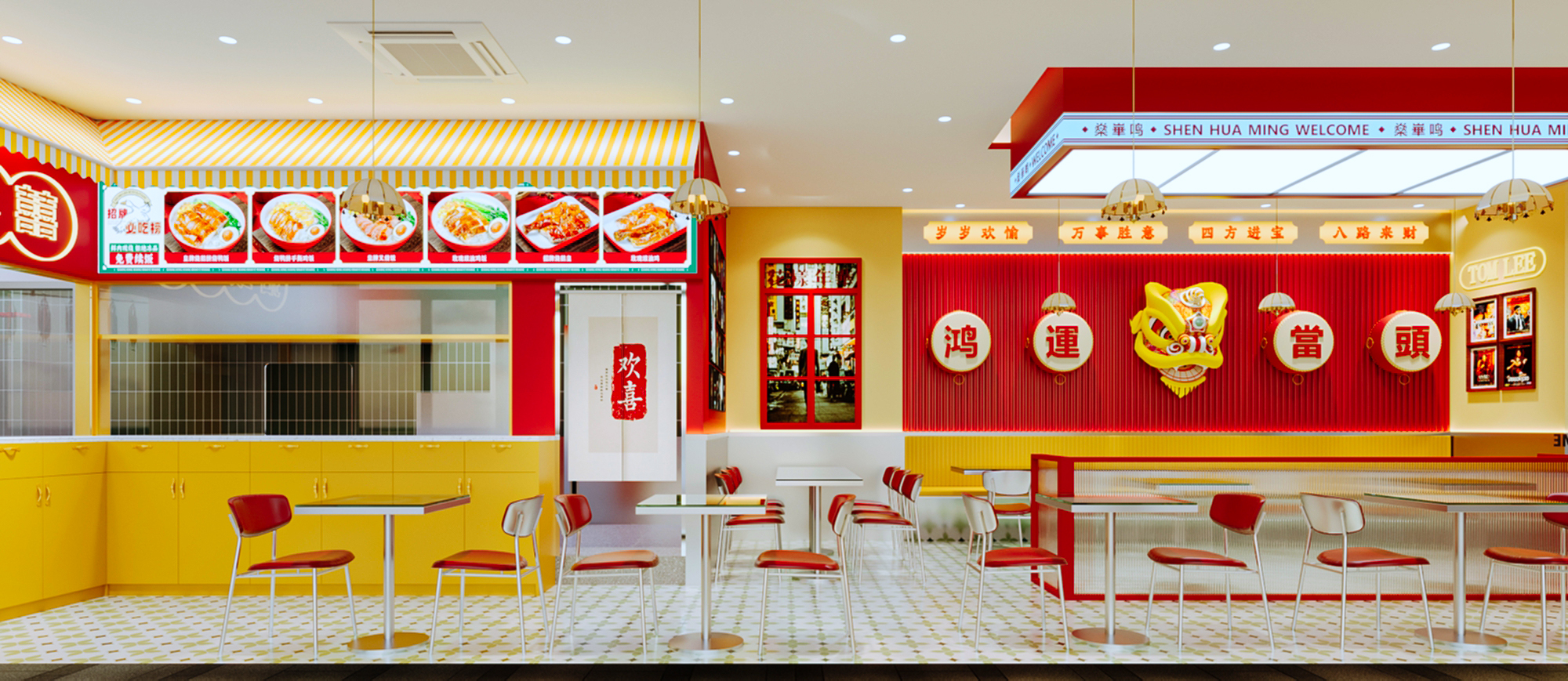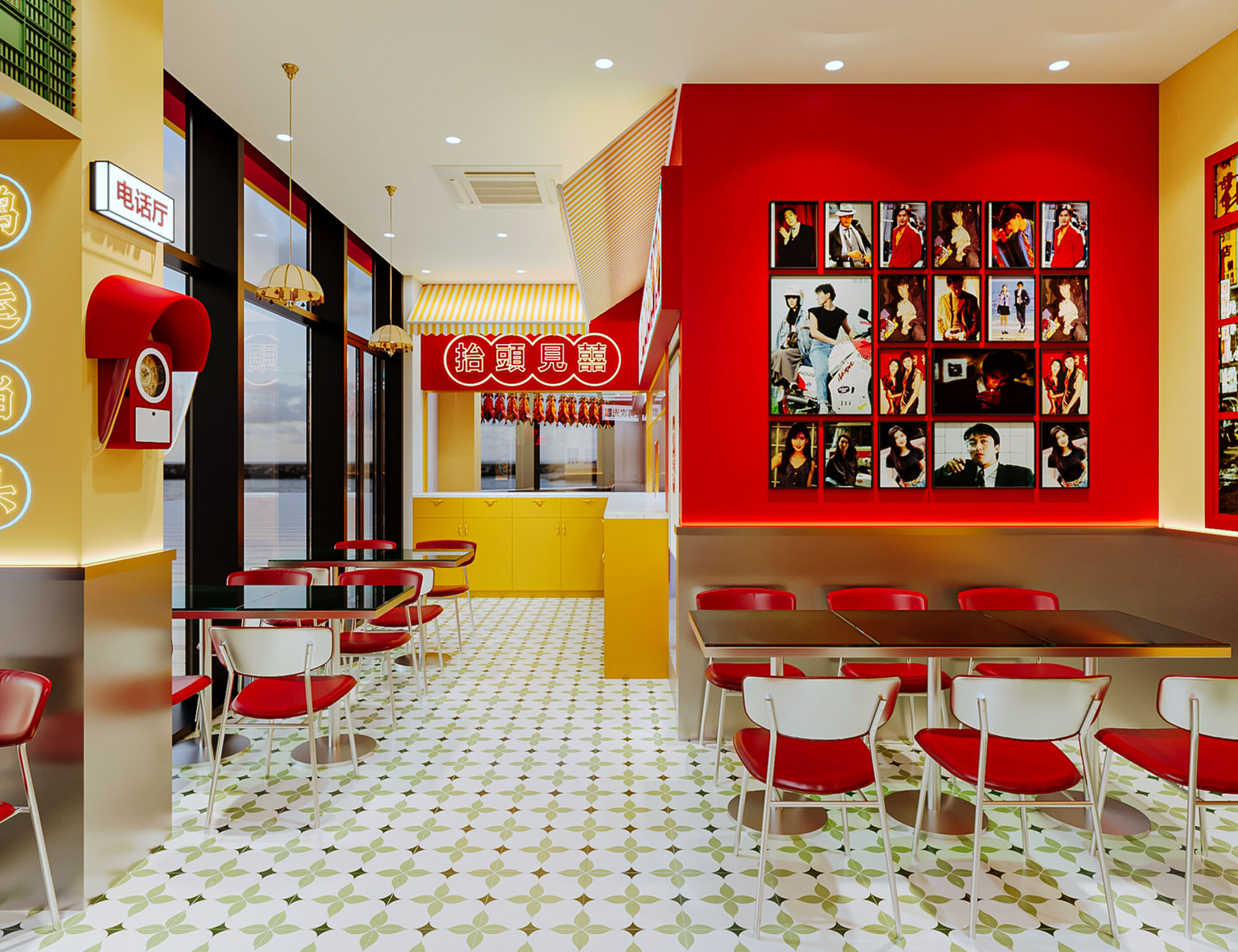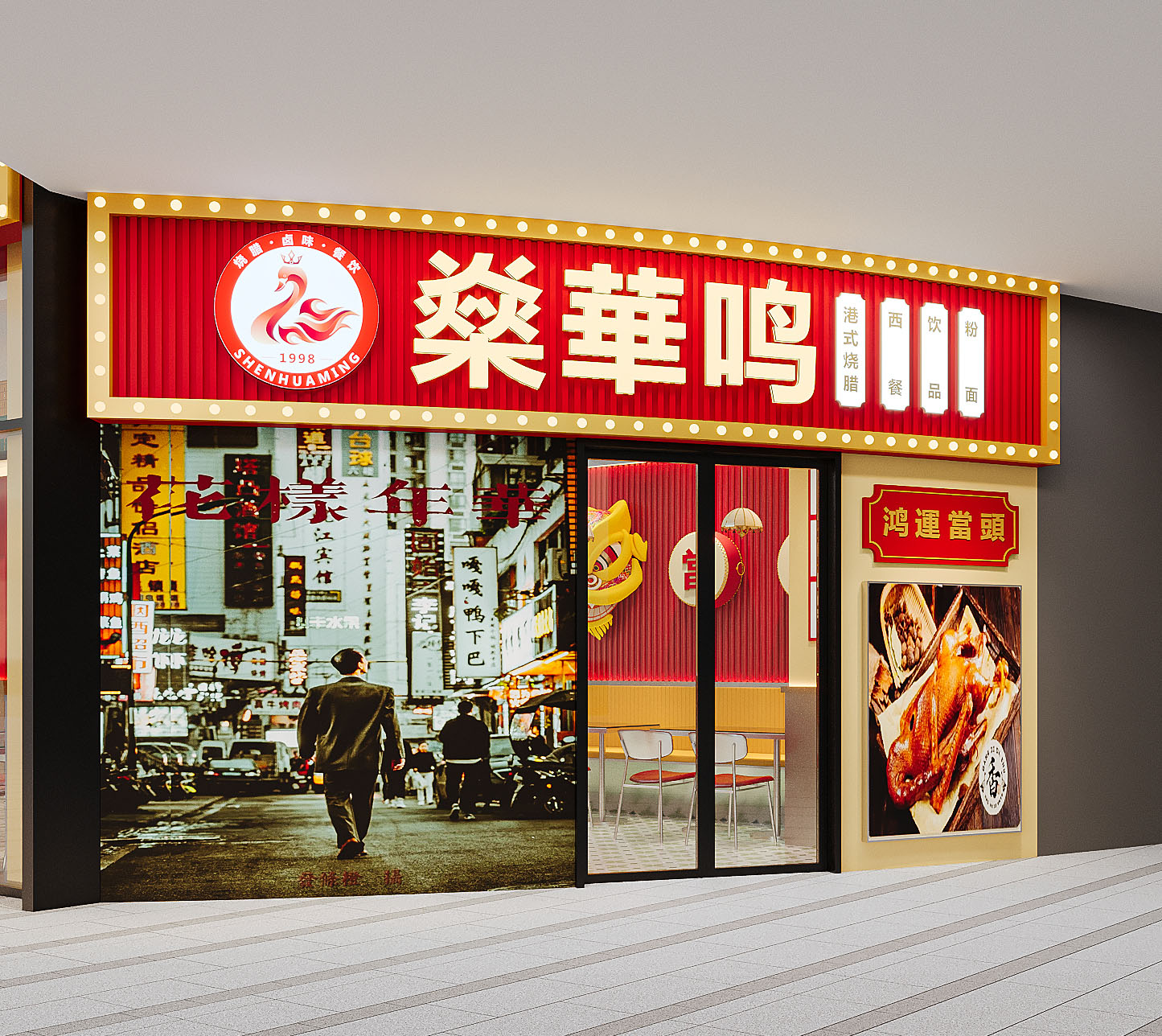 坐落于深圳寶安西鄉(xiāng)的星輝里商圈拐角處,燊華鳴茶餐廳的門頭特別搶眼,180°的超大展示面,吸睛效果直接拉滿!紅色波浪板配上金色不銹鋼包邊,一到晚上點光源一亮,整條街就屬它醒目,老遠(yuǎn)就能看見。推門進(jìn)去,腳下是經(jīng)典的港式花磚,紅綠配色復(fù)古又耐臟,走起來還有點懷舊的味道。